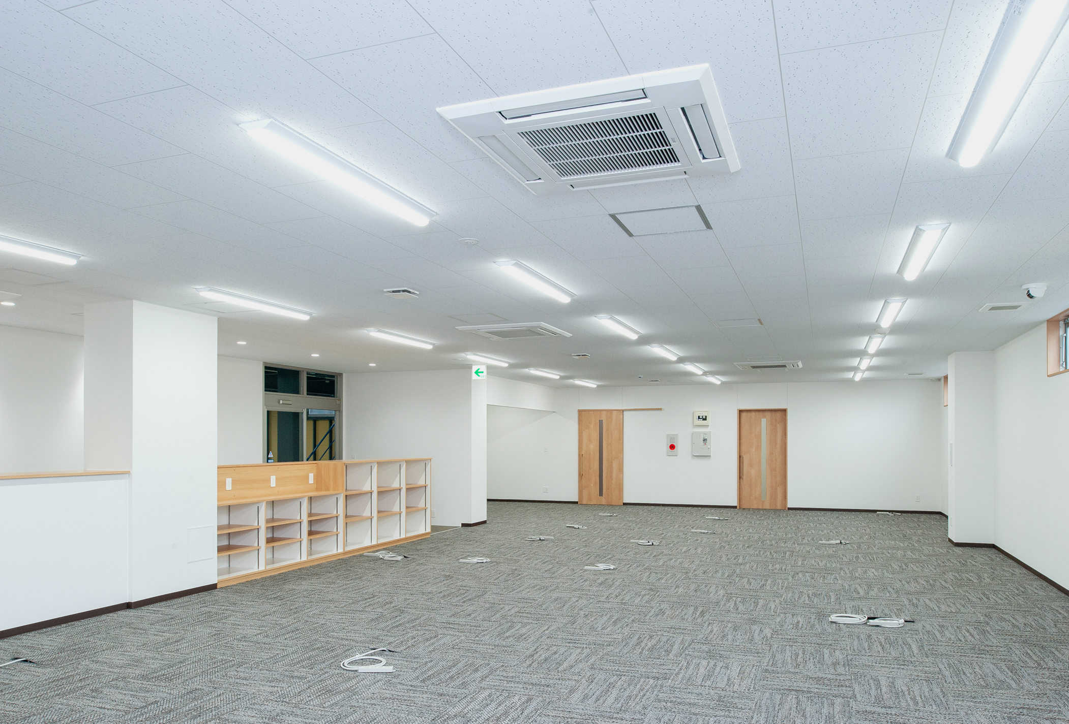 内部は事務所と自社倉庫を配置した平面となっており前面には搬入・搬出のしやすい大きな開口を設けています。